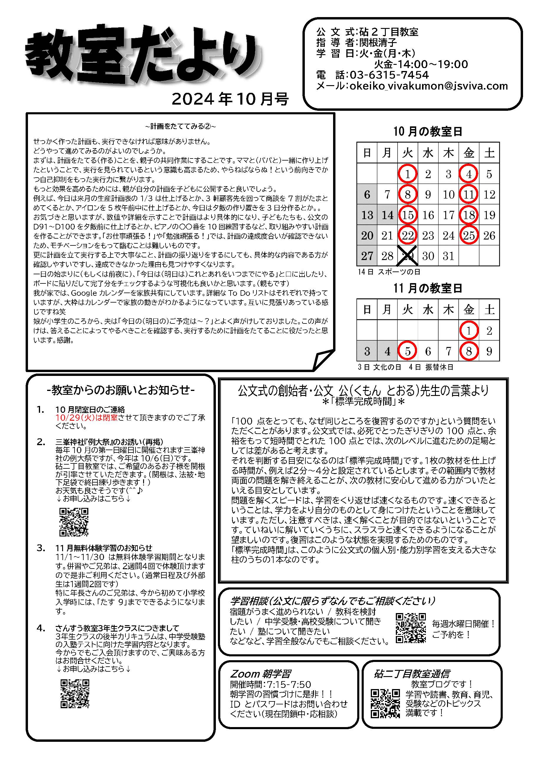 砧二丁目教室、教室だより(10月)更新しました!