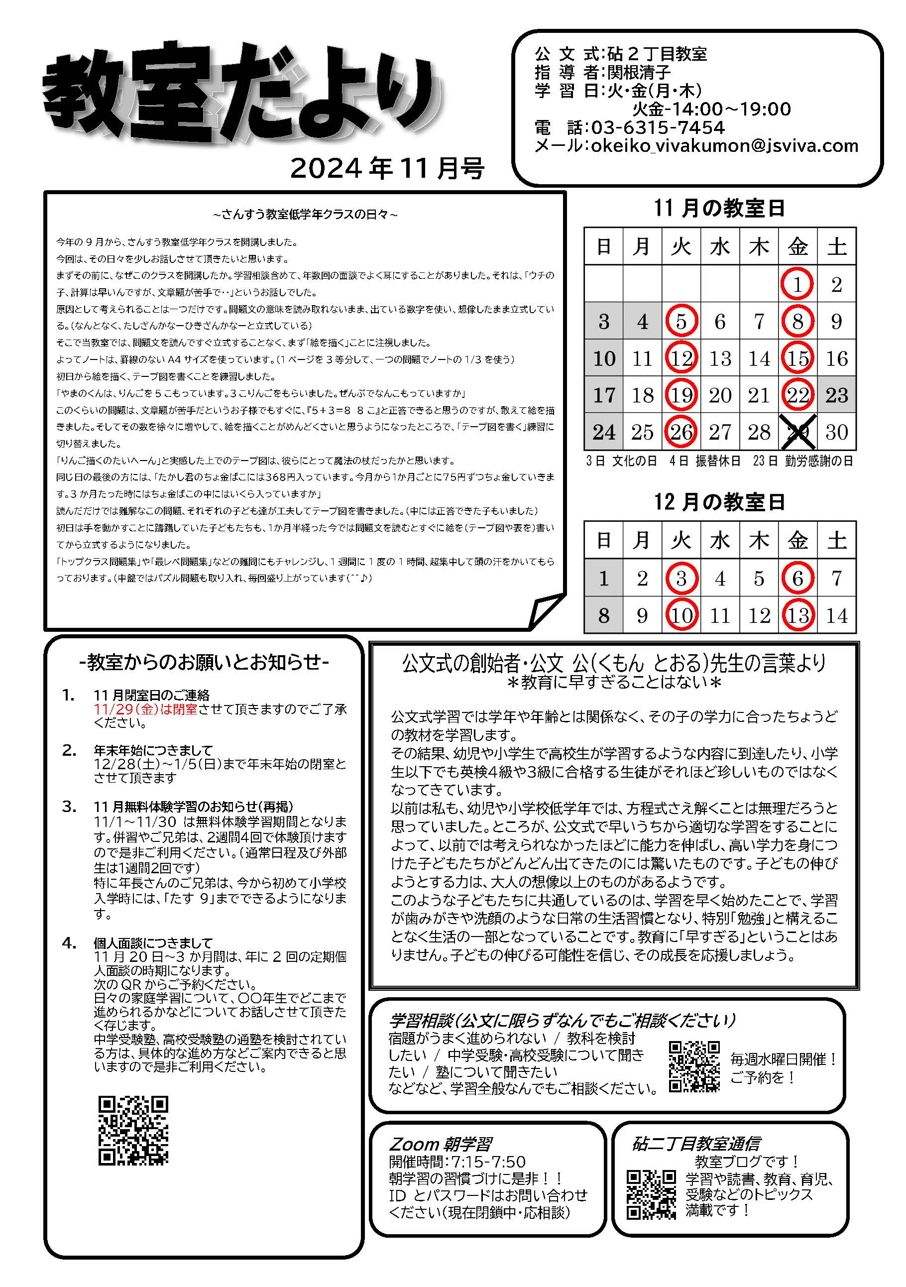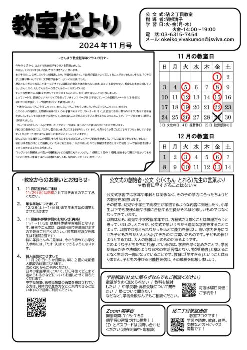 砧二丁目教室、教室だより(11月)更新しました!