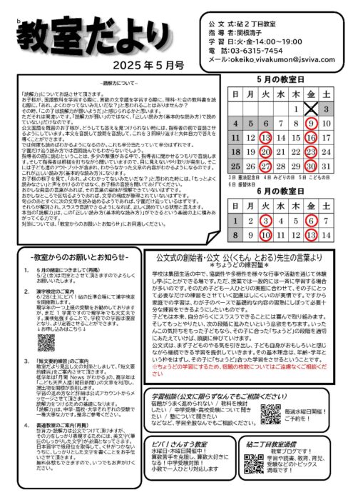 砧二丁目教室、教室だより(5月)更新しました!