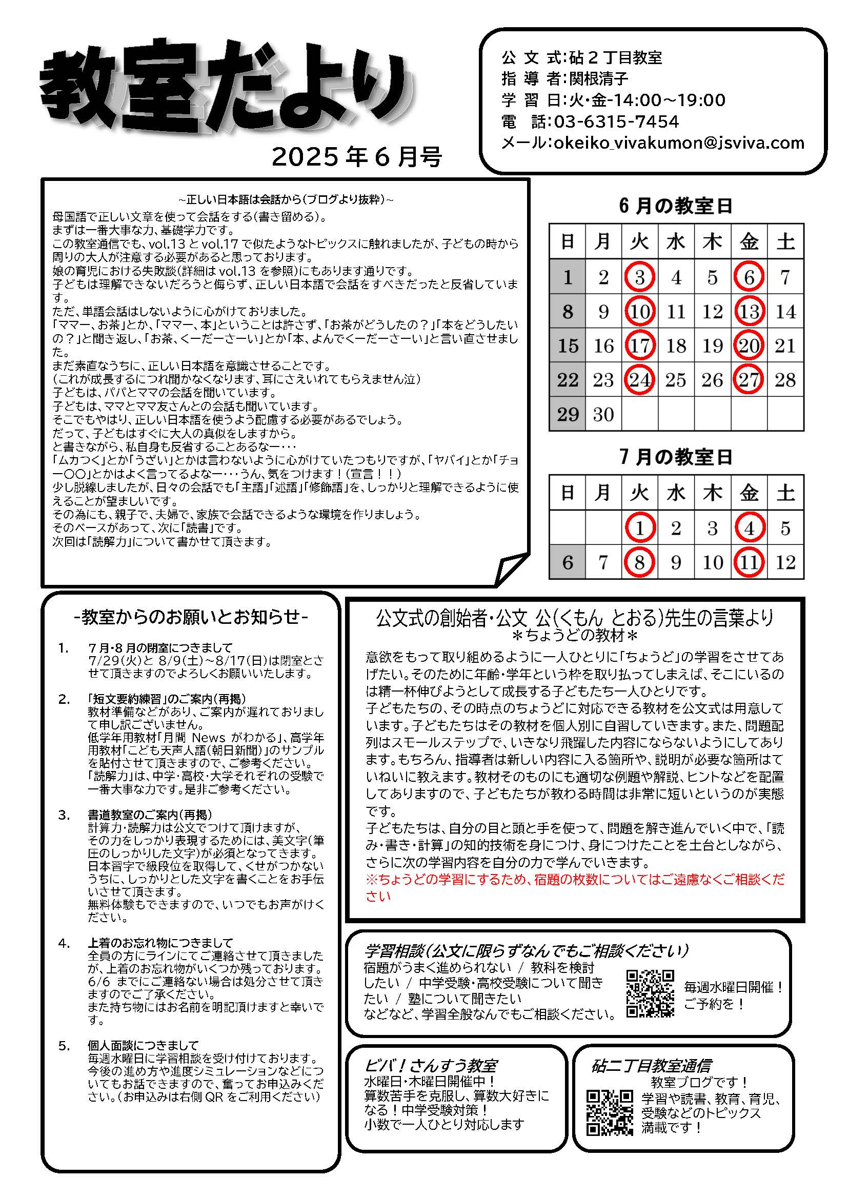 砧二丁目教室、教室だより(6月)更新しました!